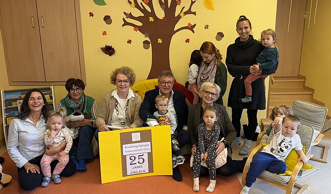 Auch LAbg. Franz Linsbauer freut sich nach der Renovierung mit den Kleinsten . . .