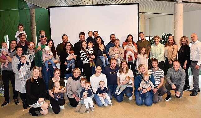 Bgm. Stefan Judmann und die ÖVP-Frauen freuen sich mit 15 Jungfamilien und ihre Babys.