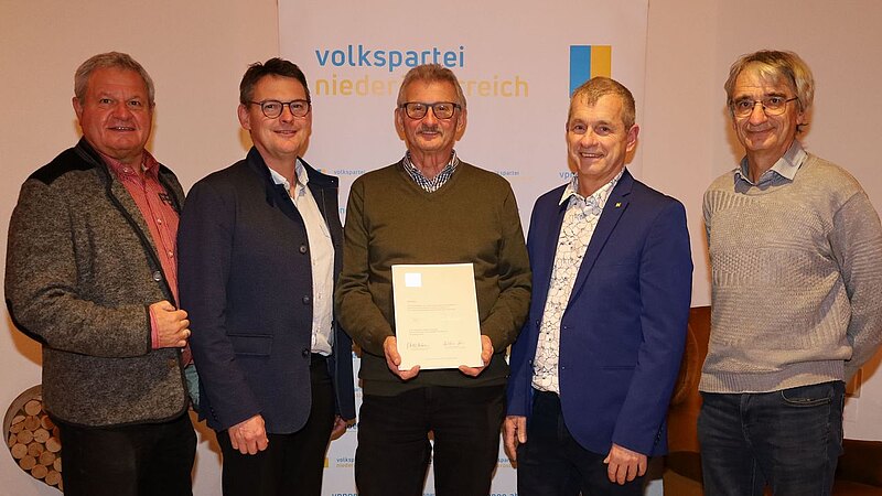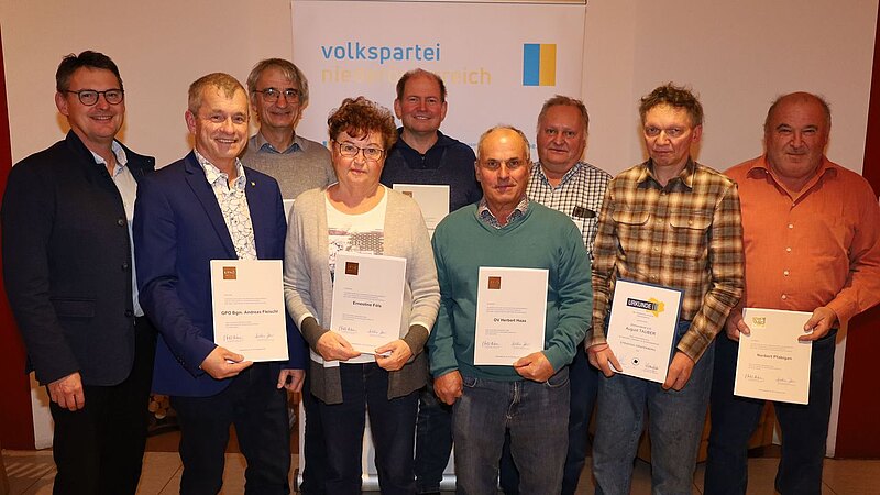 Das “Silberne Ehrenzeichen" der Volkspartei NÖ erhielten acht besonders Engagierte - unter anderem Bgm. Andreas Fleischl und sein Vbgm. Franz Hametner.