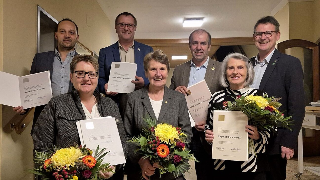 Das “Silberne Ehrenzeichen” erhielten Bgm. Wolfgang Schmöger, Vbgm. Anita Mailer und GGR Andreas Nowak.