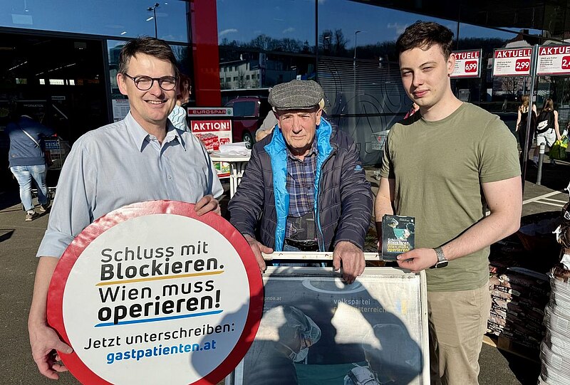 Auch bei der Standaktion vor dem neuen SPAR-Markt haben viele Menschen gegen die Vorgangsweise der Stadt Wien unterschrieben! Mit ihrer Unterschrift dokumentierten sie, dass es auch für sie völlig unakzeptabel ist, wenn Niederösterreicher nur auf Grund ihres Wohnsitzes plötzlich nicht mehr in Wien operiert werden.