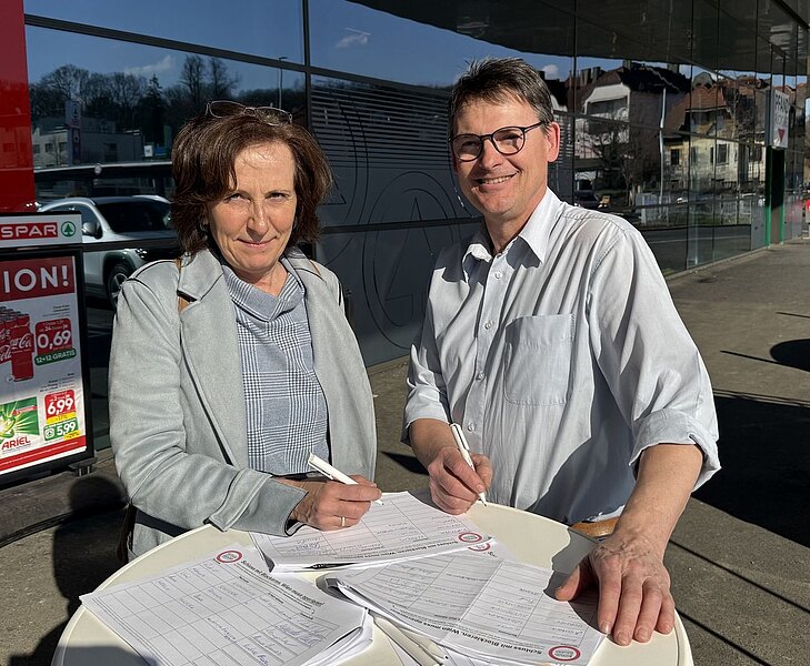 Bürgermeisterin Margarete Jarmer mit Parteiobfrau Beate Fidesser Metzger, Stellvertreter Nikolaus Dafert und Stadtrat Werner Oppitz unterstützten die Kampagne vor Ort und schon in kurzer Zeit zählte man über hundert Unterschriften."