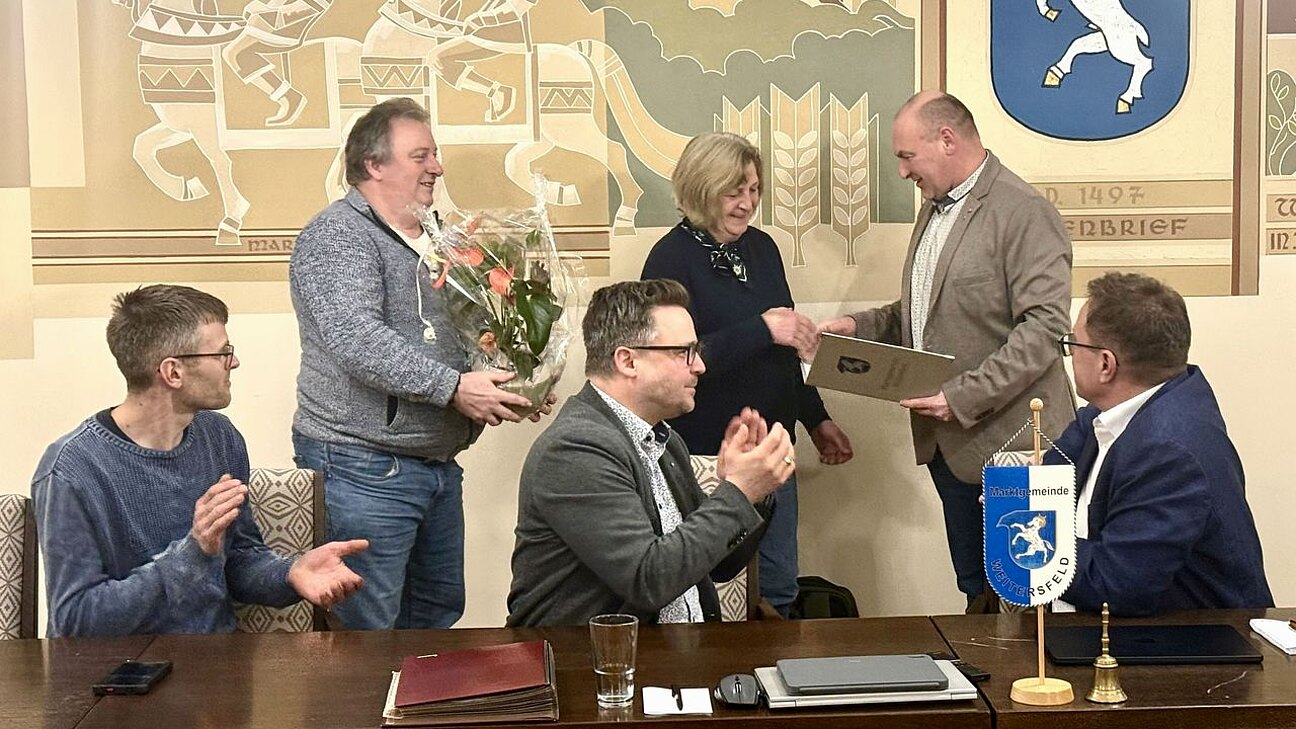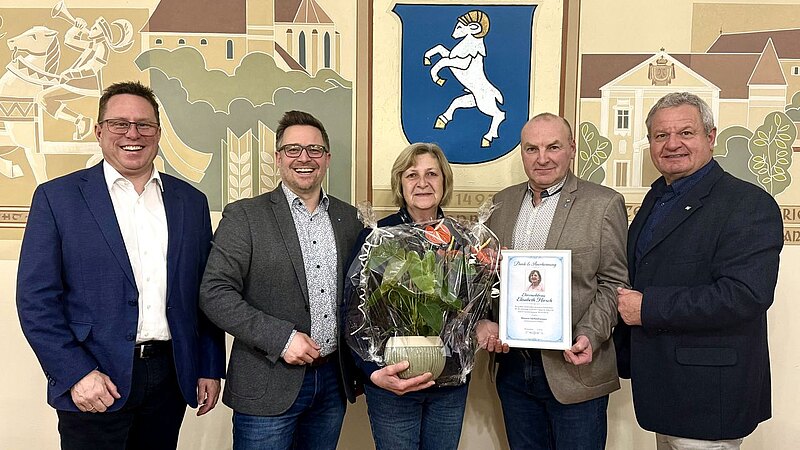Hannes Aschenbrenner stellte als neuer Gemeindeparteiobmann den entsprechenden Antrag, das Team rund um Bürgermeister Stefan Mader und Vize Karl-Heinz Steindl waren dafür und damit wurde Elisabeth Hirsch einstimmig zur Ehrenobfrau der Volkspartei Weitersfeld ernannt.