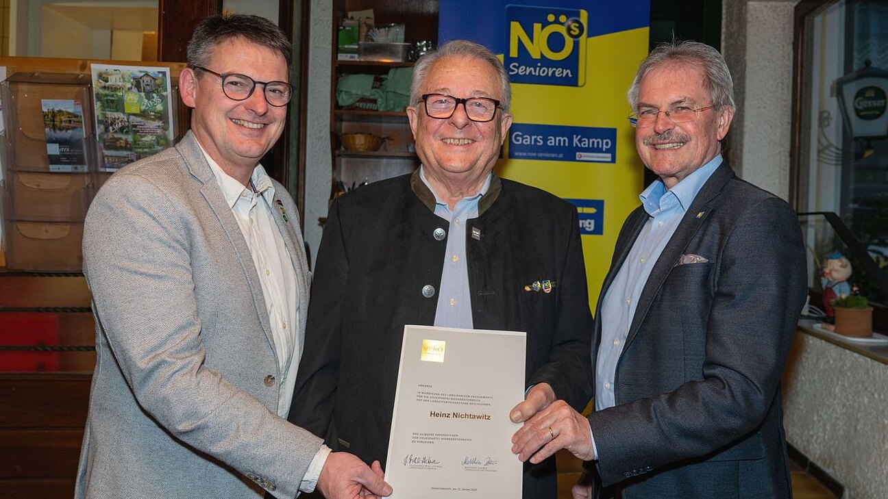 Landesobmann Präs. Carlo Wilfing überreichte an Heinz Nichtawitz das “Silberne Ehrenzeichen” der Volkspartei Niederösterreich.